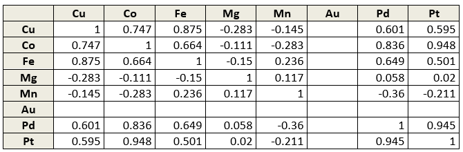 Strong Geological Correlation: Multi-element analysis shows a strong positive correlation between nickel, cobalt, iron, and Platinum Group Metals (PGEs) (r = 0.83–0.95), suggesting a common magmatic sulfide origin.